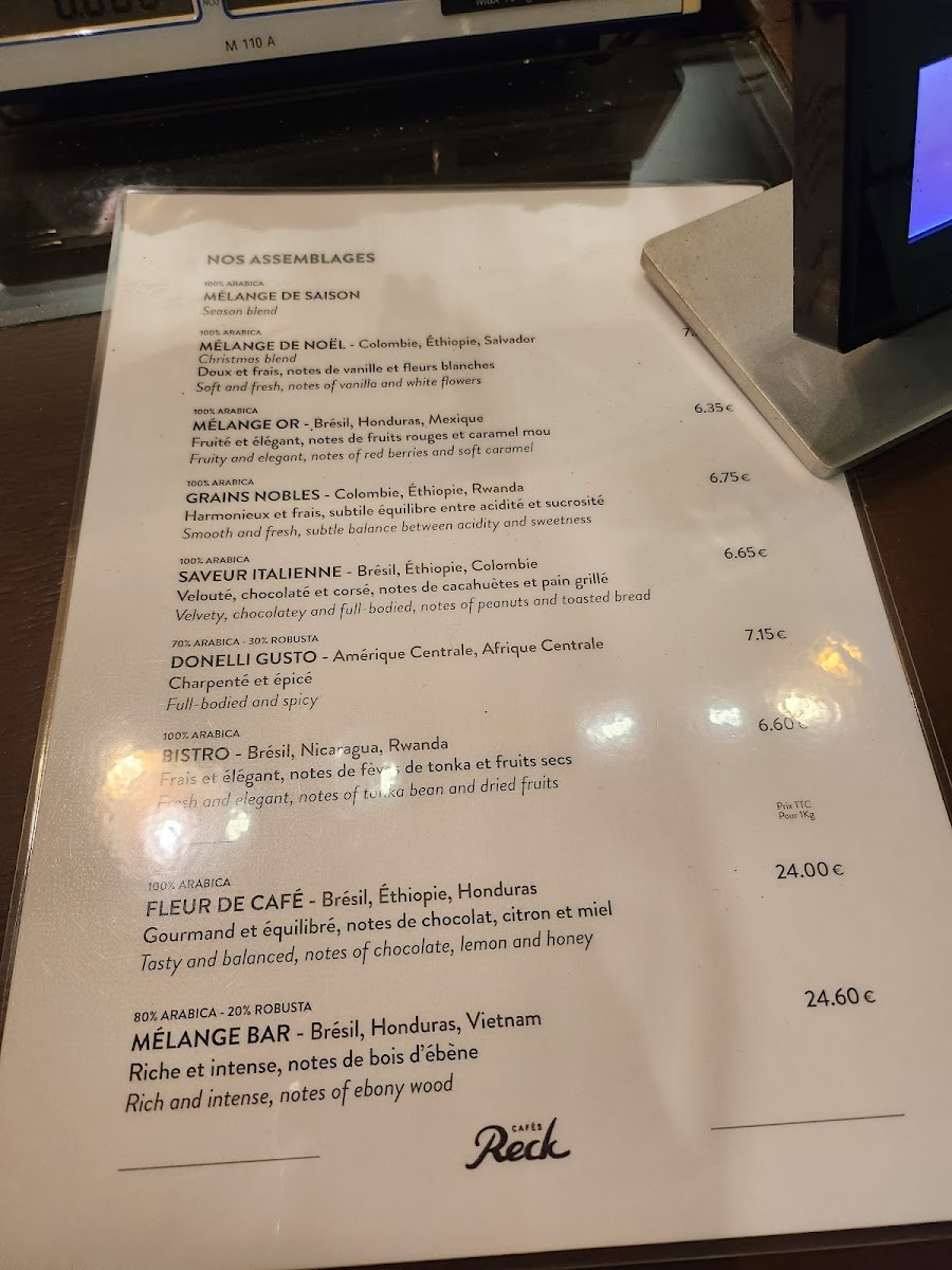 Cafés Reck Menu